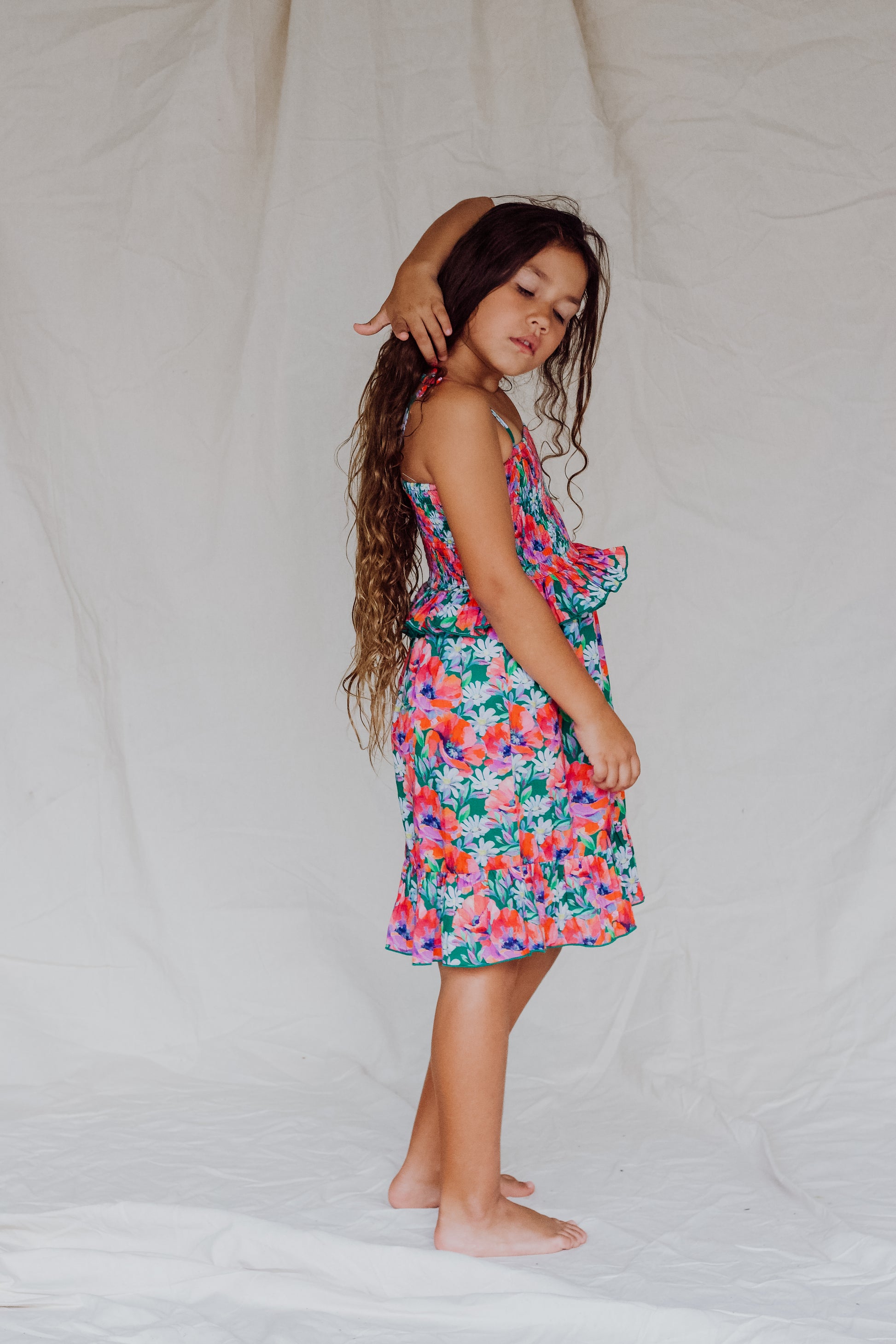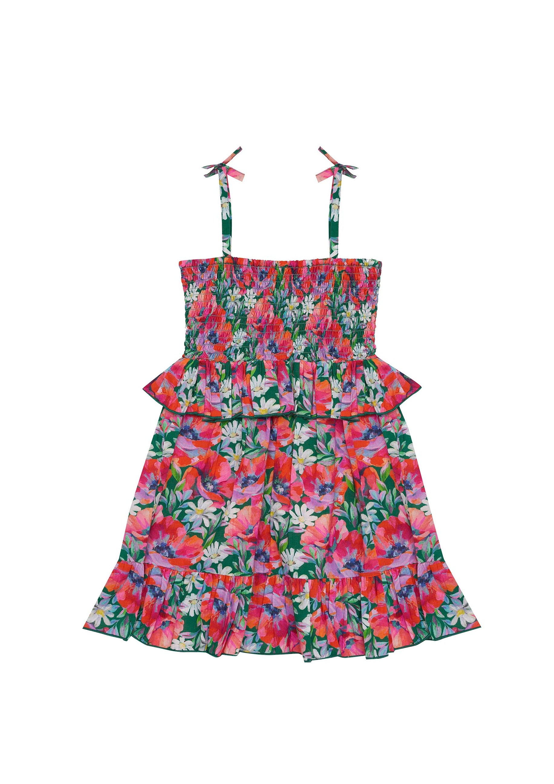 It's all in the detail…...Our Arabella dress has beautiful stretchy shirring through the bodice for a comfortable fit. The full skirt ruffle layer and shoulder strap detail all make this dress a stand out piece.