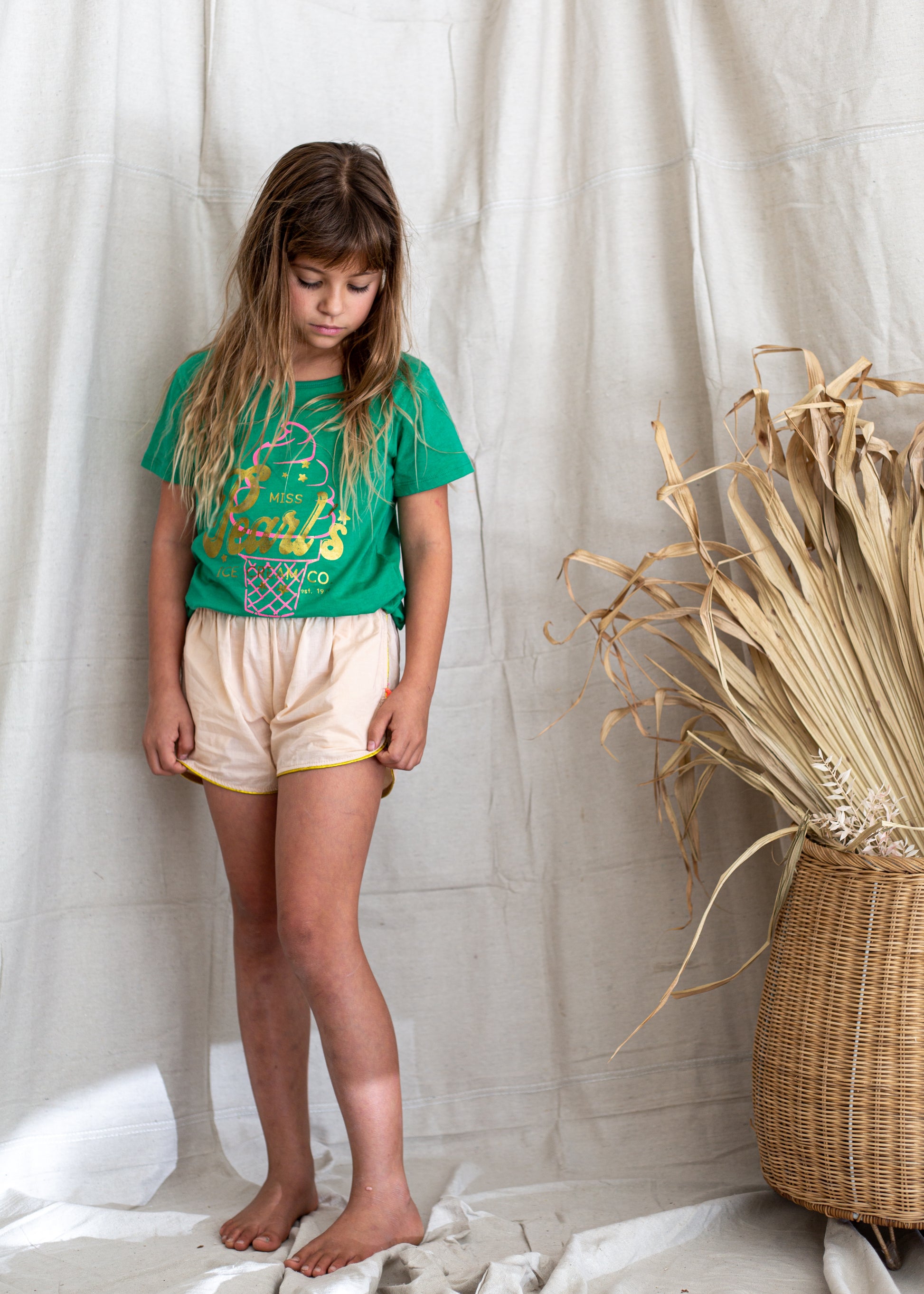 Darling shorts that feature a soft stretch waistband, gold piping and a fluro tassel to add a touch of glamour.