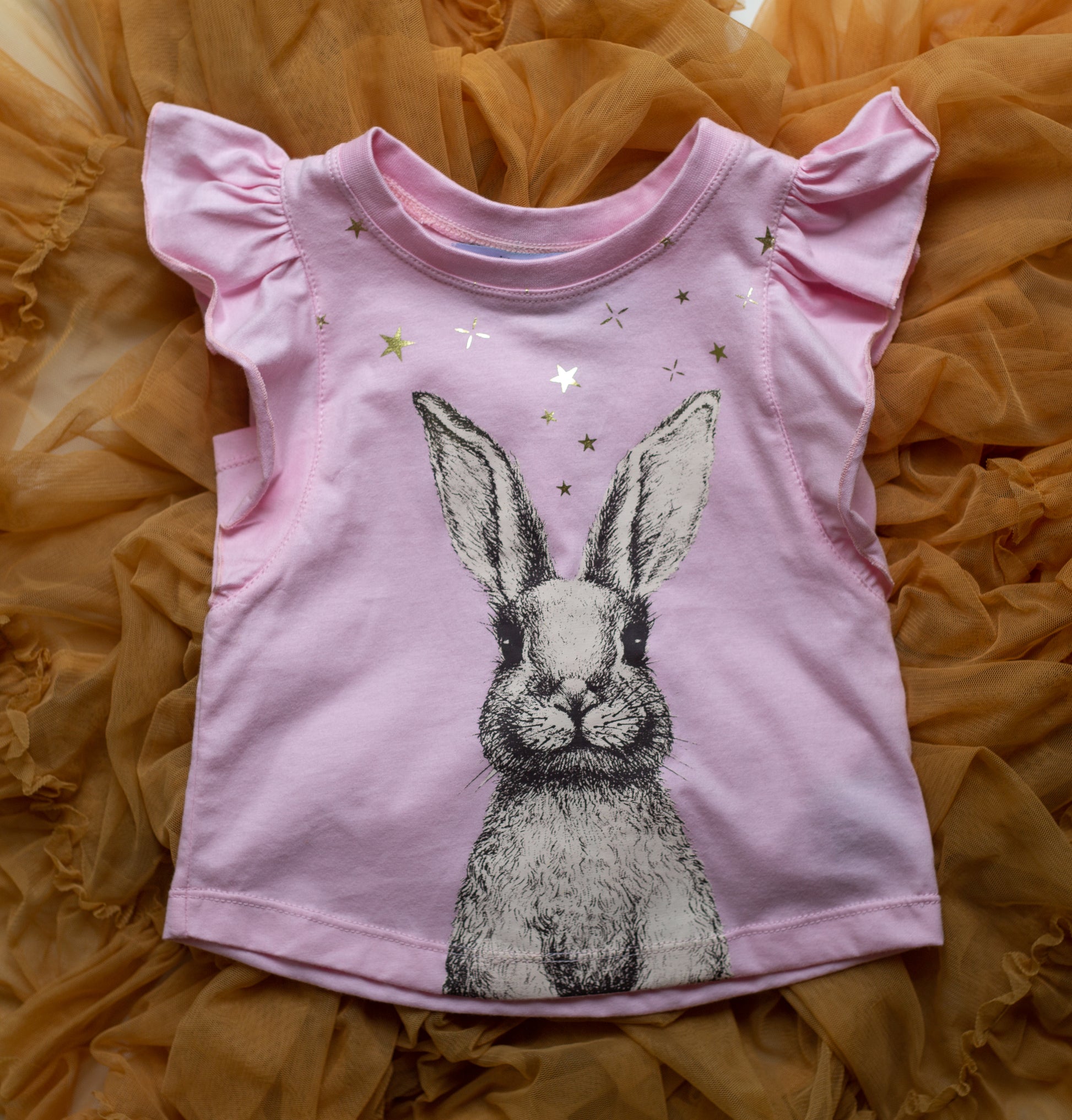 Made of 100% Cotton with sweet little Miss Bunny print and gold foil stars.