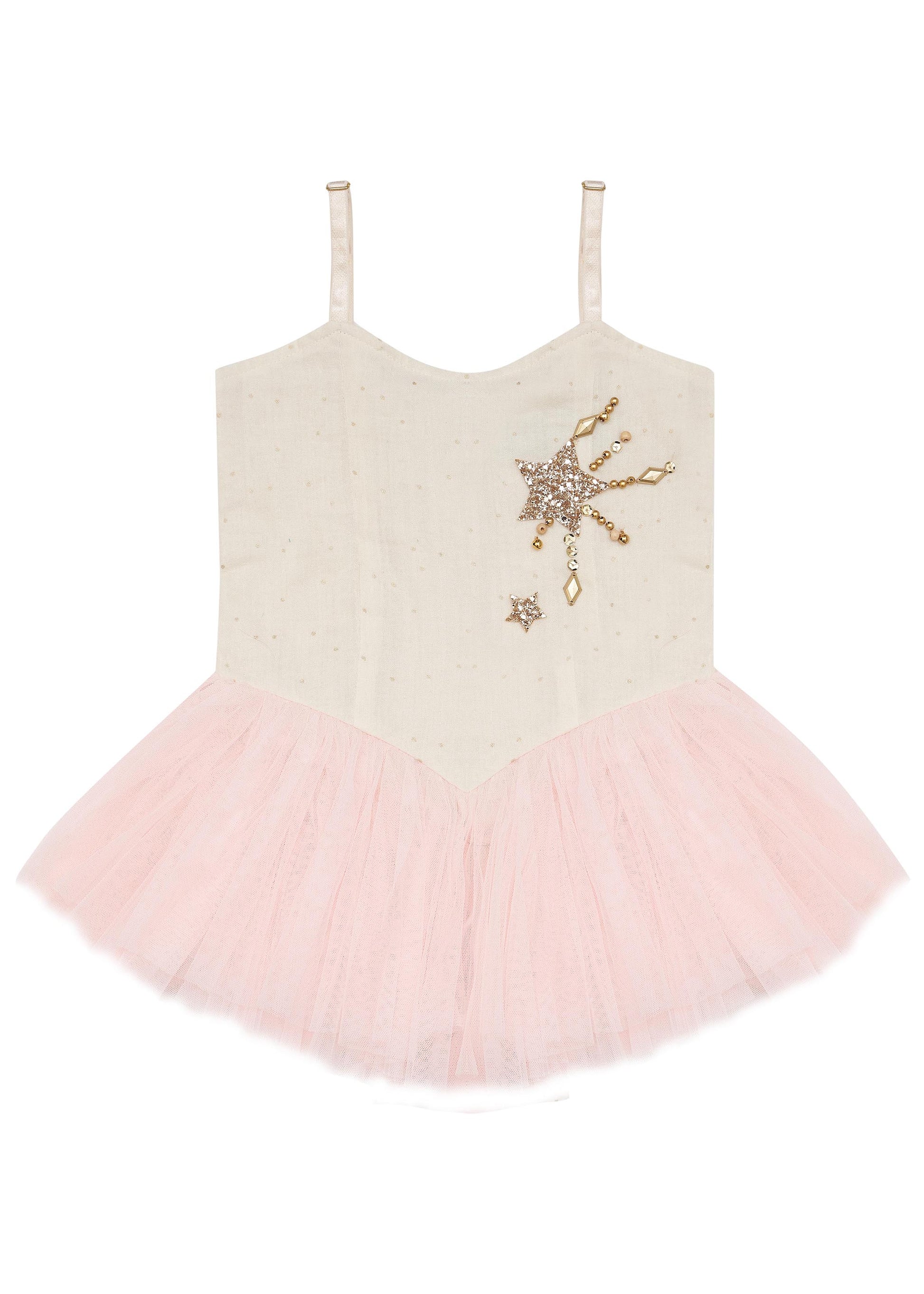Sizes 0-1 and 1-2 is crafted with a lightweight soft tulle overlay, providing extra protection to beads and trim detail.