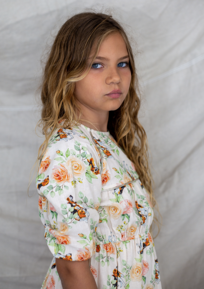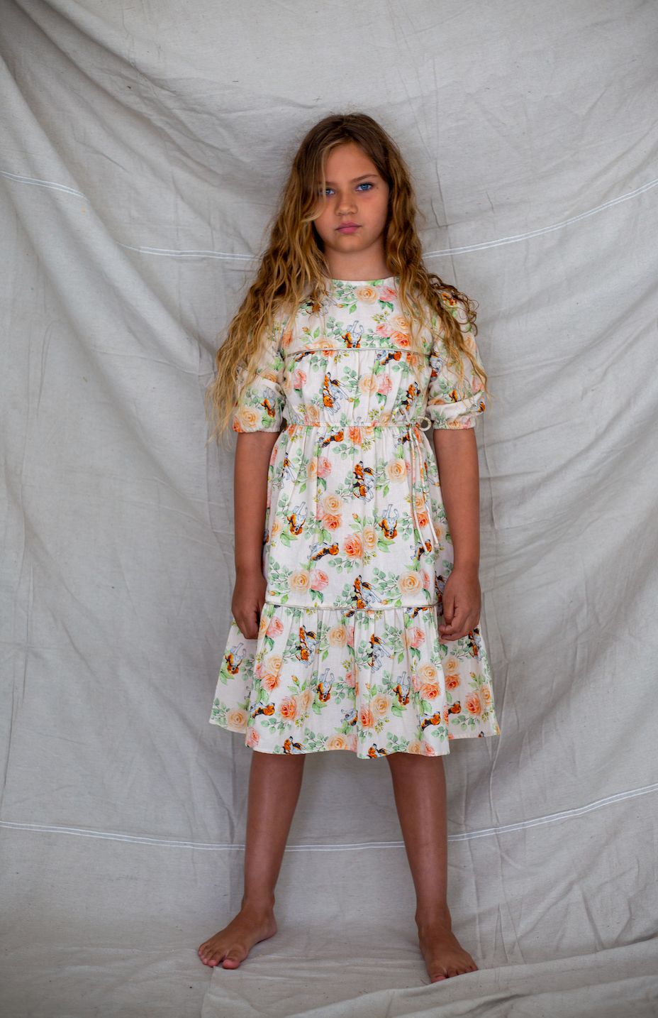 The Duchess dress is a stunning dress that is fitted through the bodice & loose fitting from the waist down. It has an elasticated waistband and 3/4 length sleeves.