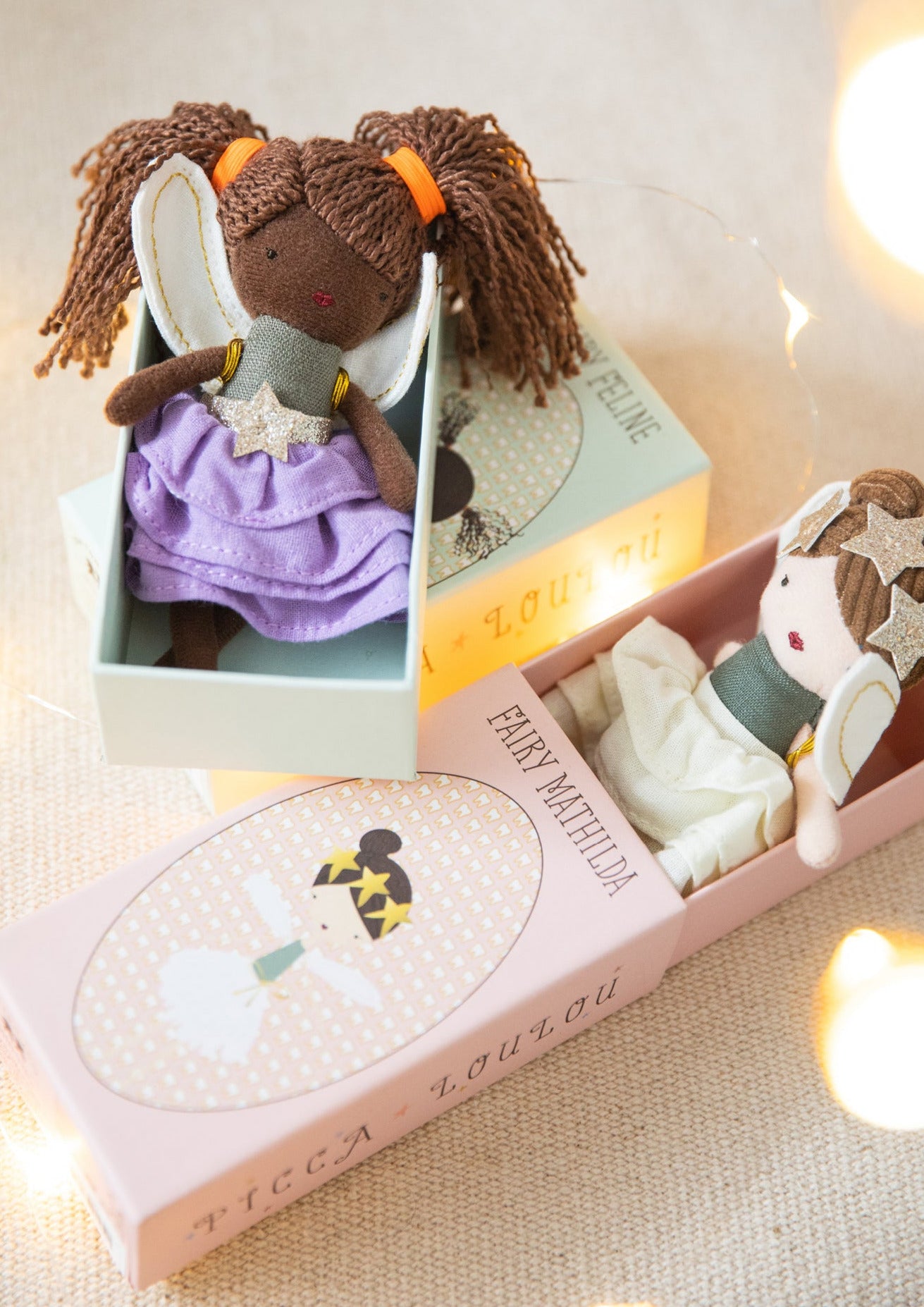 Due to the popularity of the standard 35cm Fairy Feline, this Tooth Fairy Feline in giftbox was created! Crafted from linen, cotton and polyester, Fairy Feline is bound to inspire budding imaginations. The Giftbox is perfect for holding little teeth for the Tooth Fairy too!