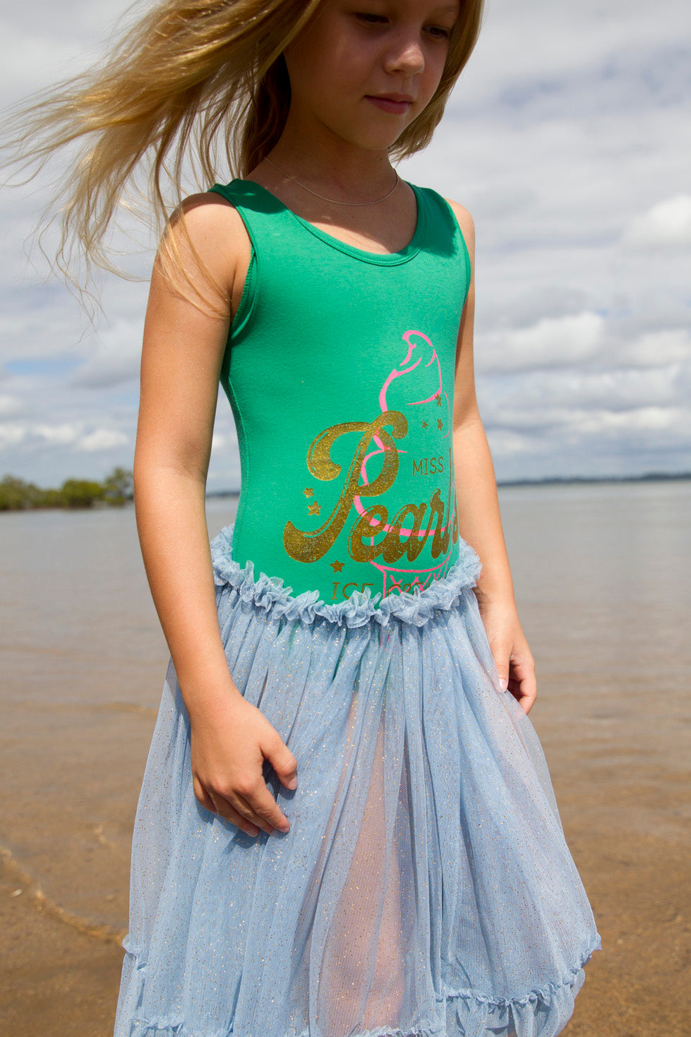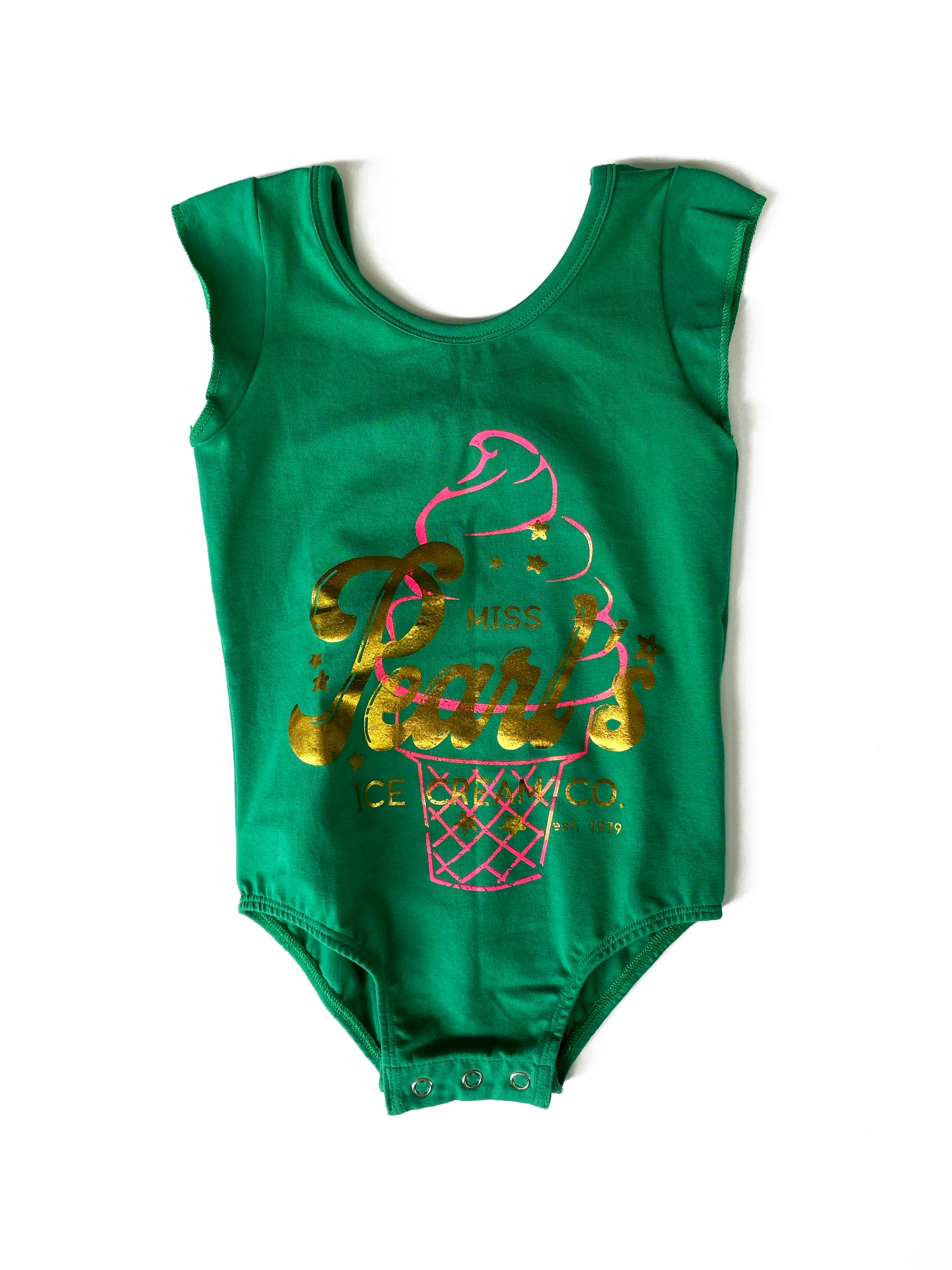 A classic Summer piece with a scoop neck and back with the vintage inspired "Miss Pearls Ice Cream Co" gold logo on the front.