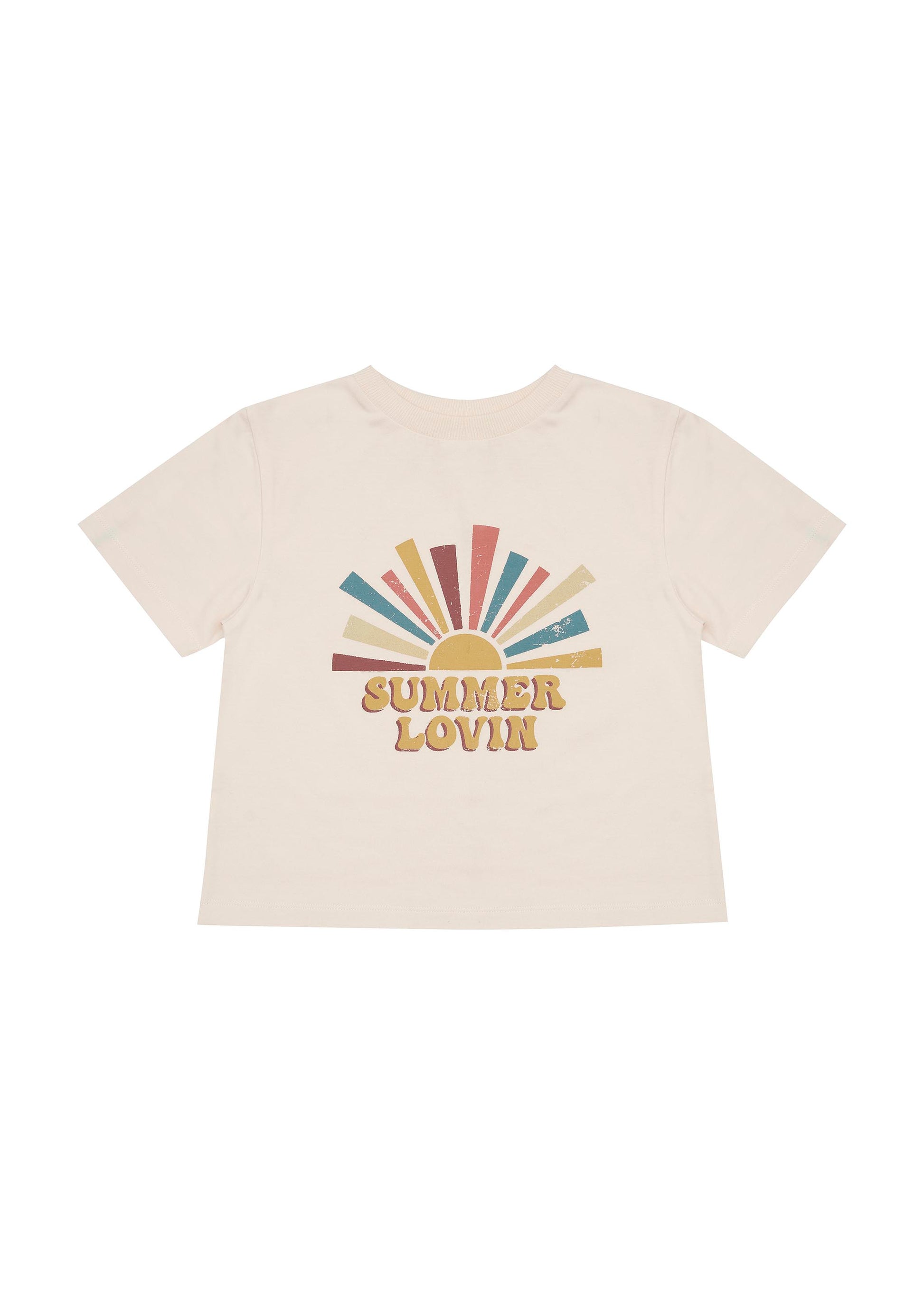 A soft cotton classic tee with our fun ''summer Lovin'' graphic. The Pearl colour is so easy to match that it is sure to be on repeat this Summer with everything from maxi skirts to denim shorts.