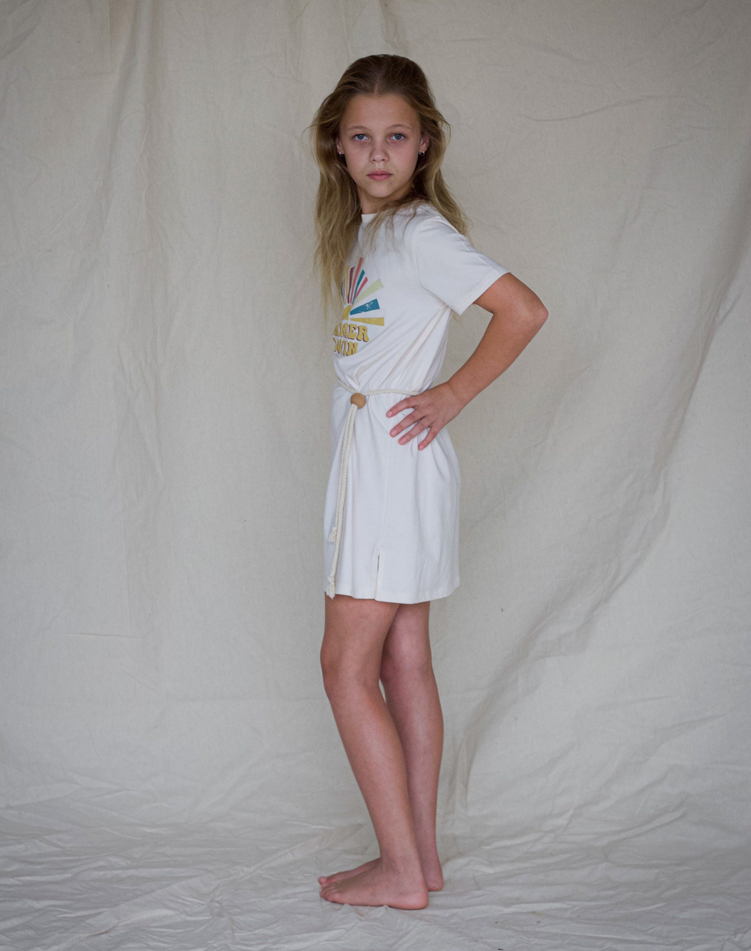Our Live dress is easy to style & perfect for warm summer days. Made from soft cotton jersey with a tassel belt. Pop it on with your sneakers for a park play or sandals for a stroll at the markets