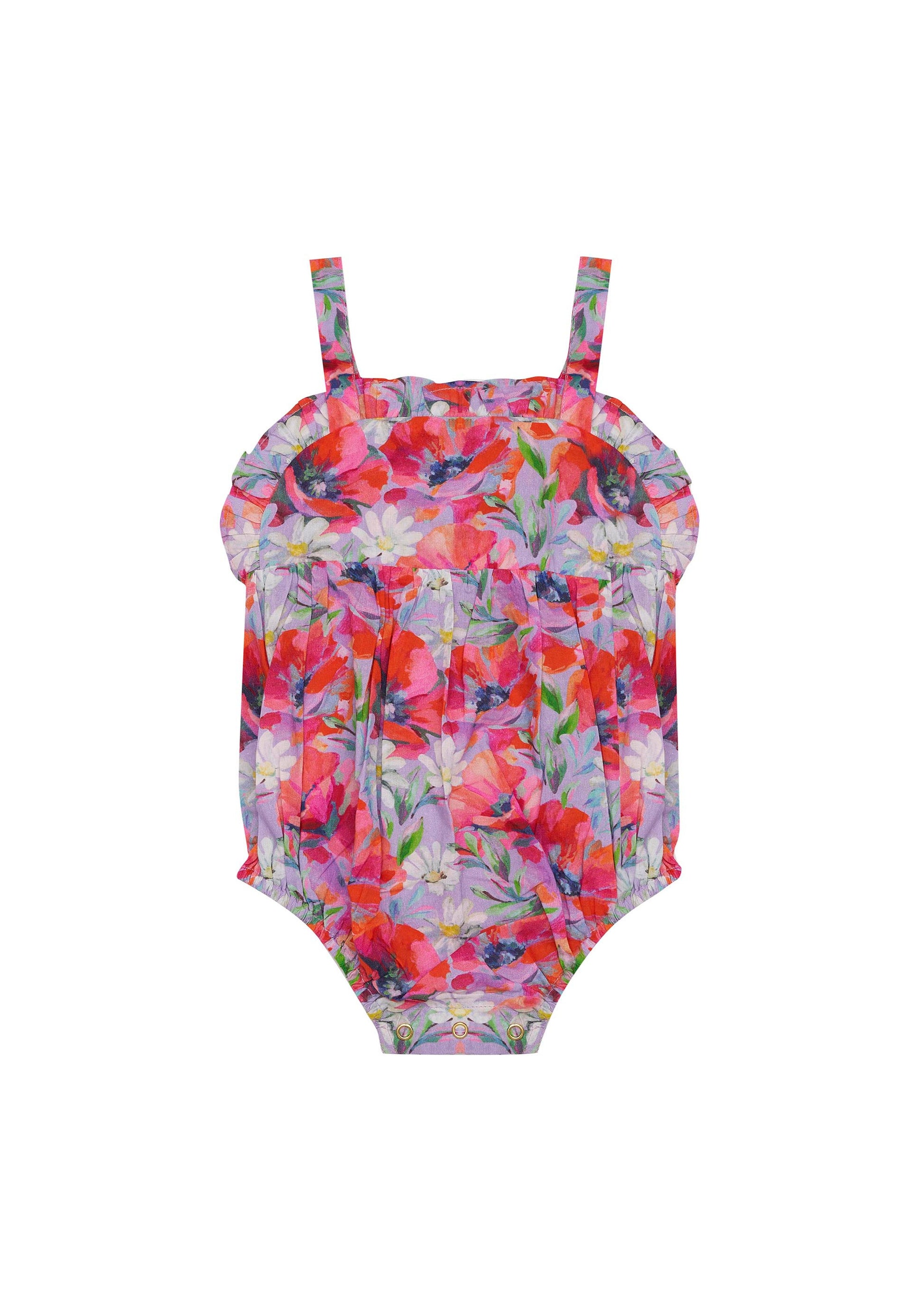 The Sweetest little romper in our custom 'Summer Fields' print.