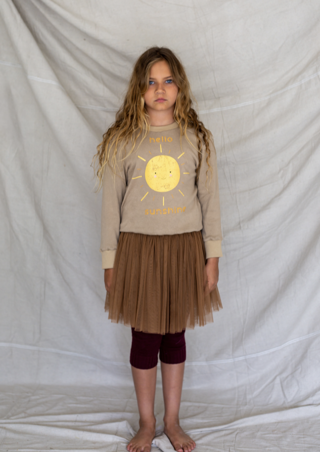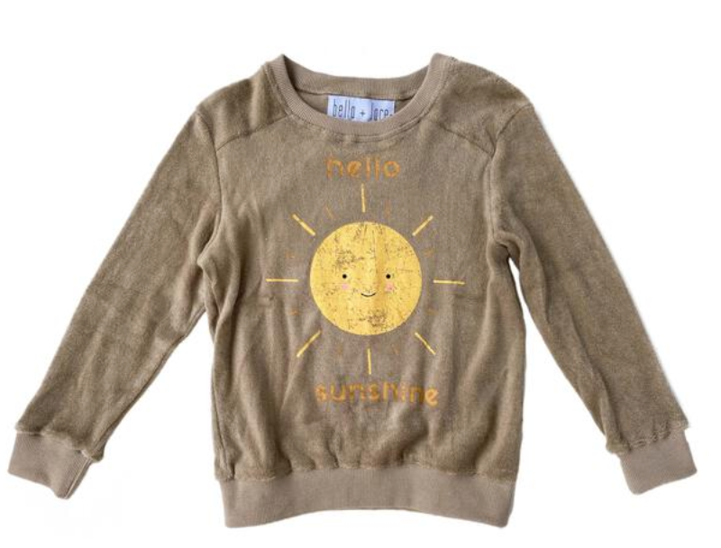 The Lulu Jumper is a soft, comfortable, easy to throw on terry towelling sweater. The ‘Hello Sunshine’ motif is sure to brighten up any day.