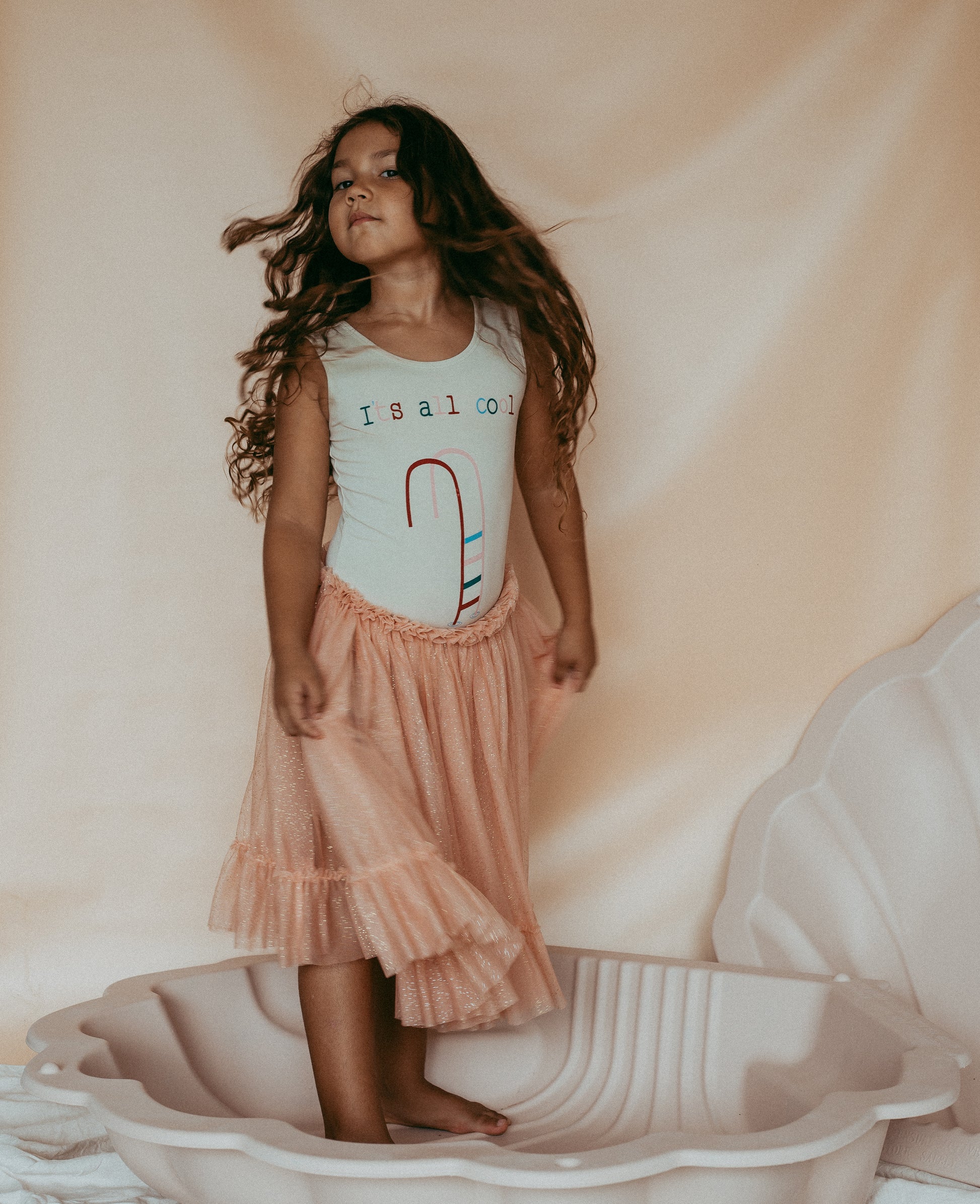 Our super comfy-cool leotard featuring original summer graphic is perfect to wear under tutus, shorts, and skirts all summer long.  Made from stretchy cotton/elastane for easy pull over fit and comfort.