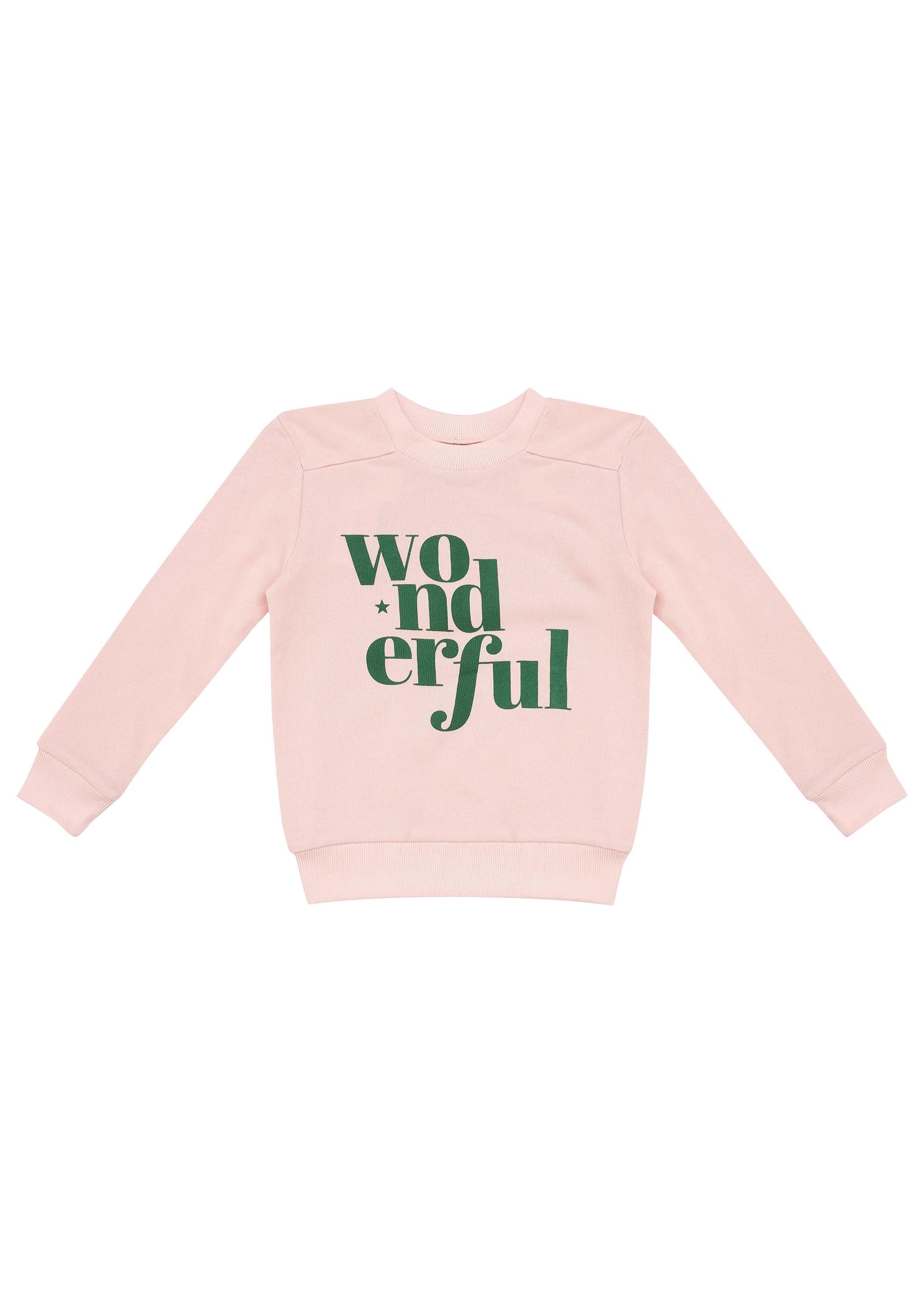 Soft French Terry custom dyed in this seasons most luscious colours with our exclusive “wonderful” print, in a relaxed fit with ribbed cuffs and collar. Wear over our Mariah dress for just the right mix of tule and relaxed cool, or pair with the “Billy” skirt for a sweet and pretty coordinated look.
