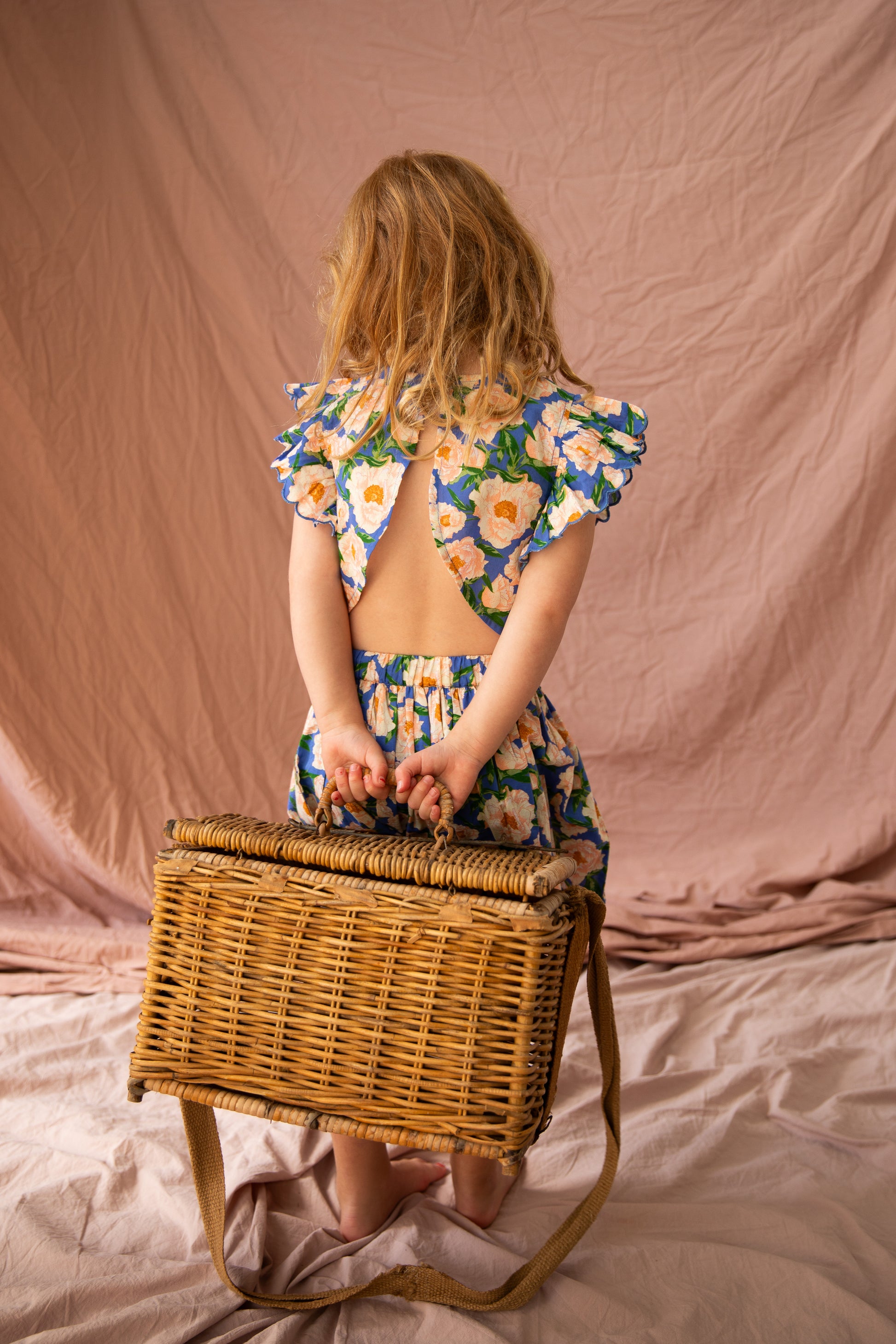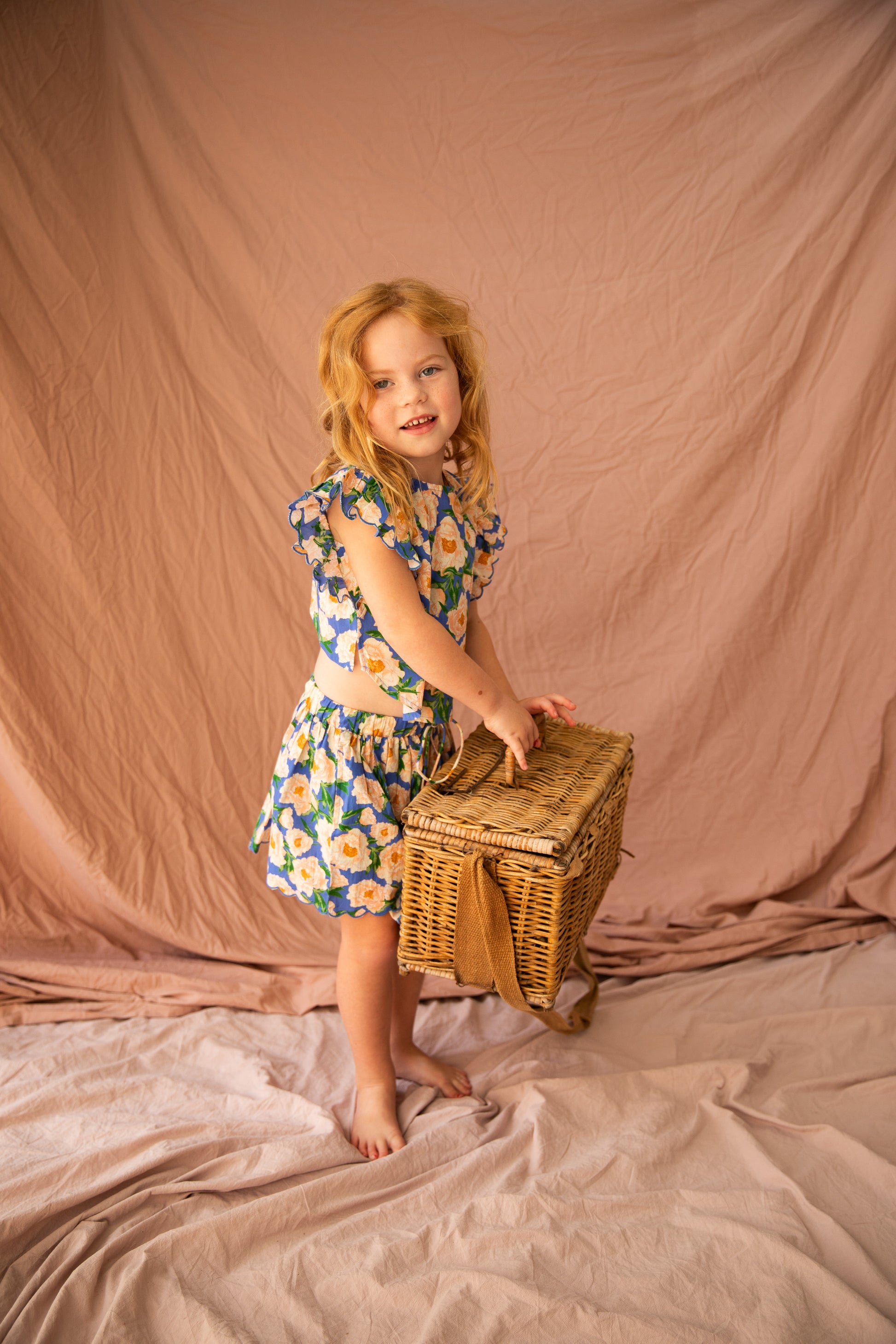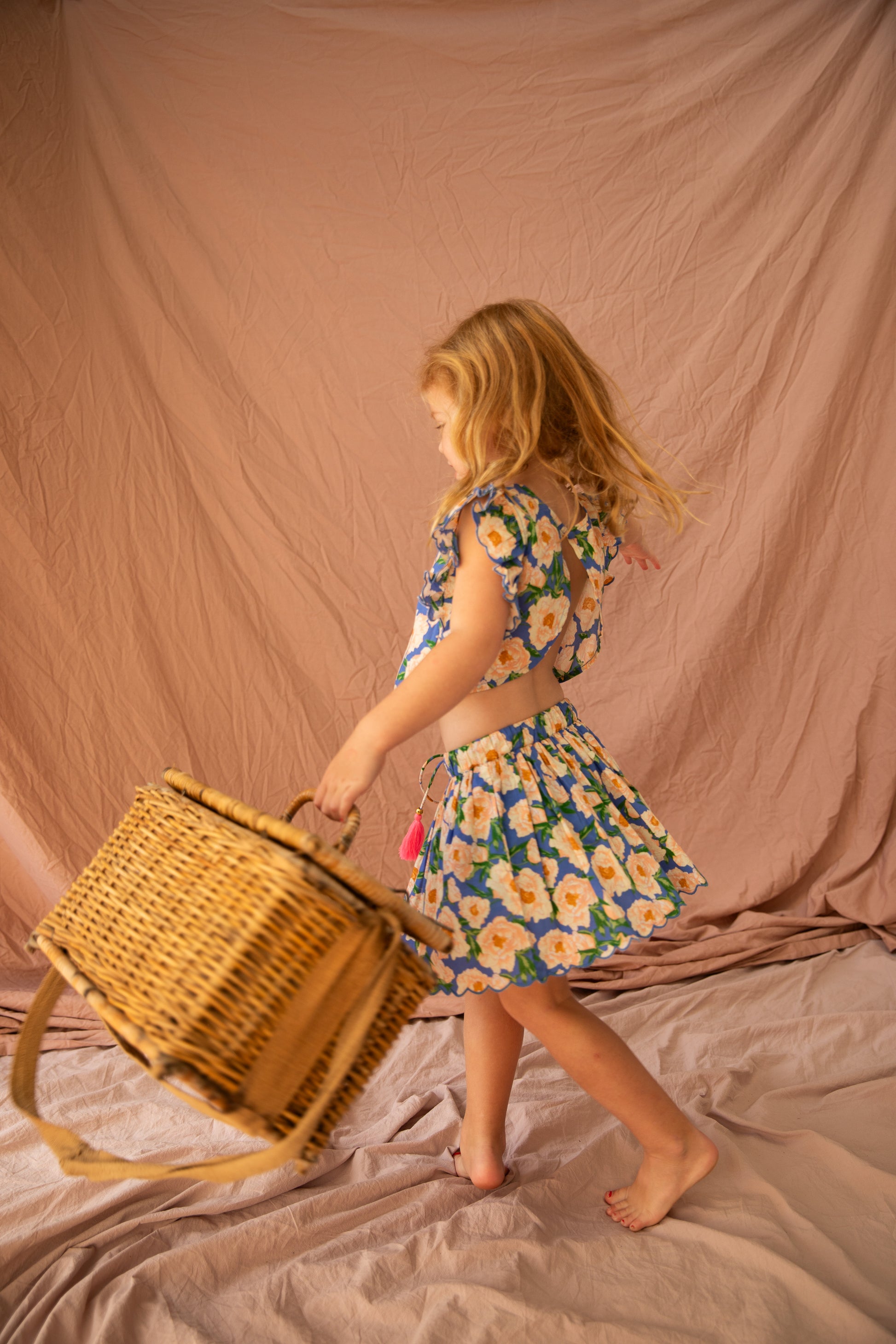 This sweet as can be top features fluttery shoulders, finished with scalloped embroidery edging and open back to catch the summer breeze in our Soiree Bouquet print on light cotton voile.  Effortlessly matches back with our Anna skirt for a stunning set.